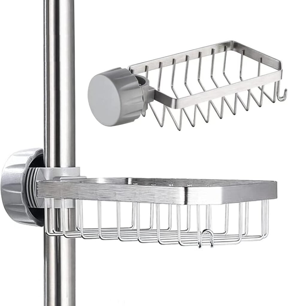Por último, tenemos las cestas o rejillas para colgar o apoyar en los grifos, estas son una genial idea, y son tendencia, pues además de no abrir agujeros, se puede colgar en casi cualquier tipo de grifo de ducha o bañera.